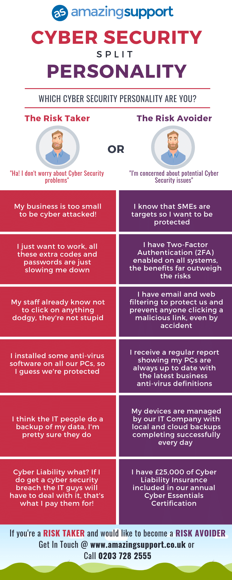 We created an infographic for you to decide which Cyber Risk Profile your businesses aligns with, have a read below and then get in touch if any of your cyber security procedures need tightening or testing.
